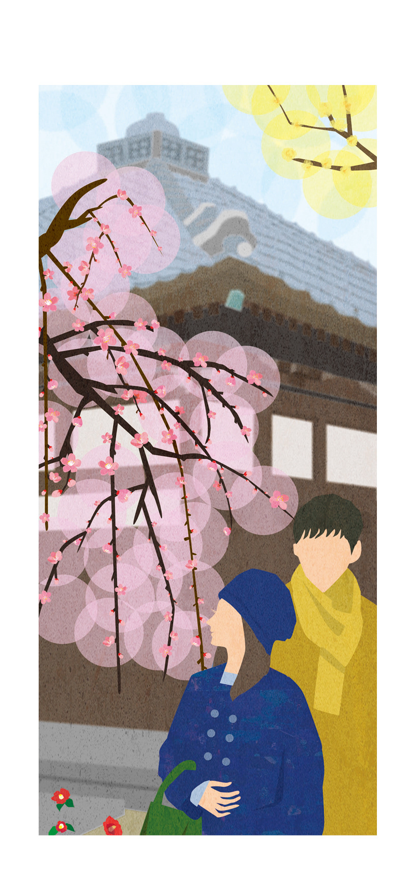 Cover illustration for Kamakura Guide map , Winter 2025 issue.